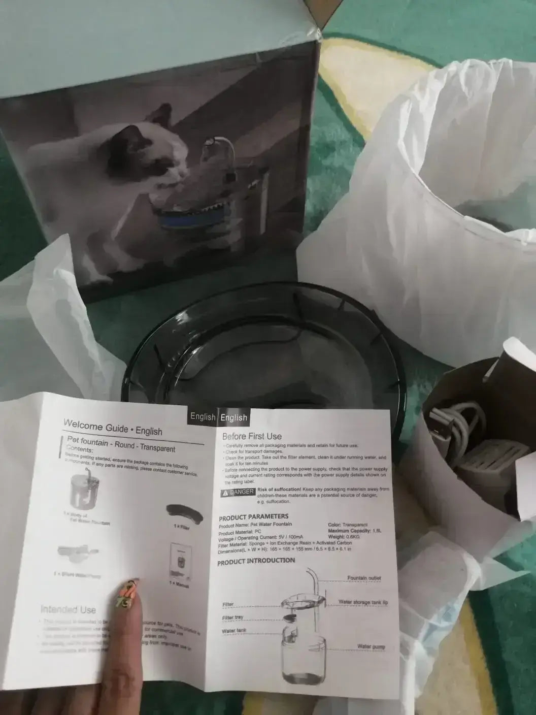 El Paquete incluye: 1 Fuente purificadora de agua para mascotas.