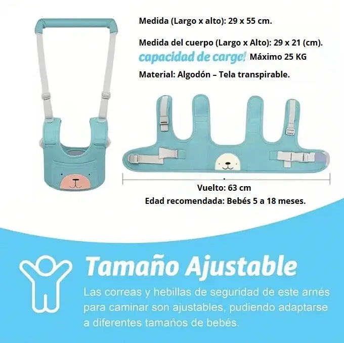 Este arnés no solo brinda seguridad al bebé, sino que también permite que tú lo guíes con comodidad, cercanía y sin tensión física.
