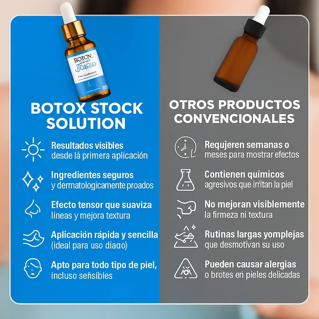 A diferencia de otros productos, BOTOX STOCK SOLUTION combina ingredientes innovadores que trabajan con tu piel para que luzca más saludable, fresca y revitalizada ✨