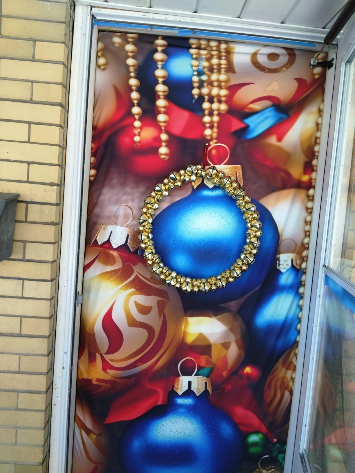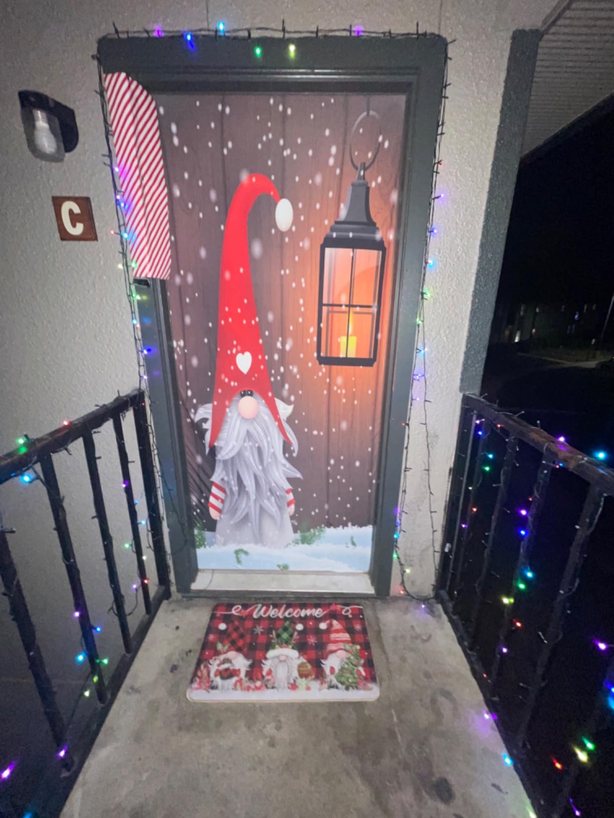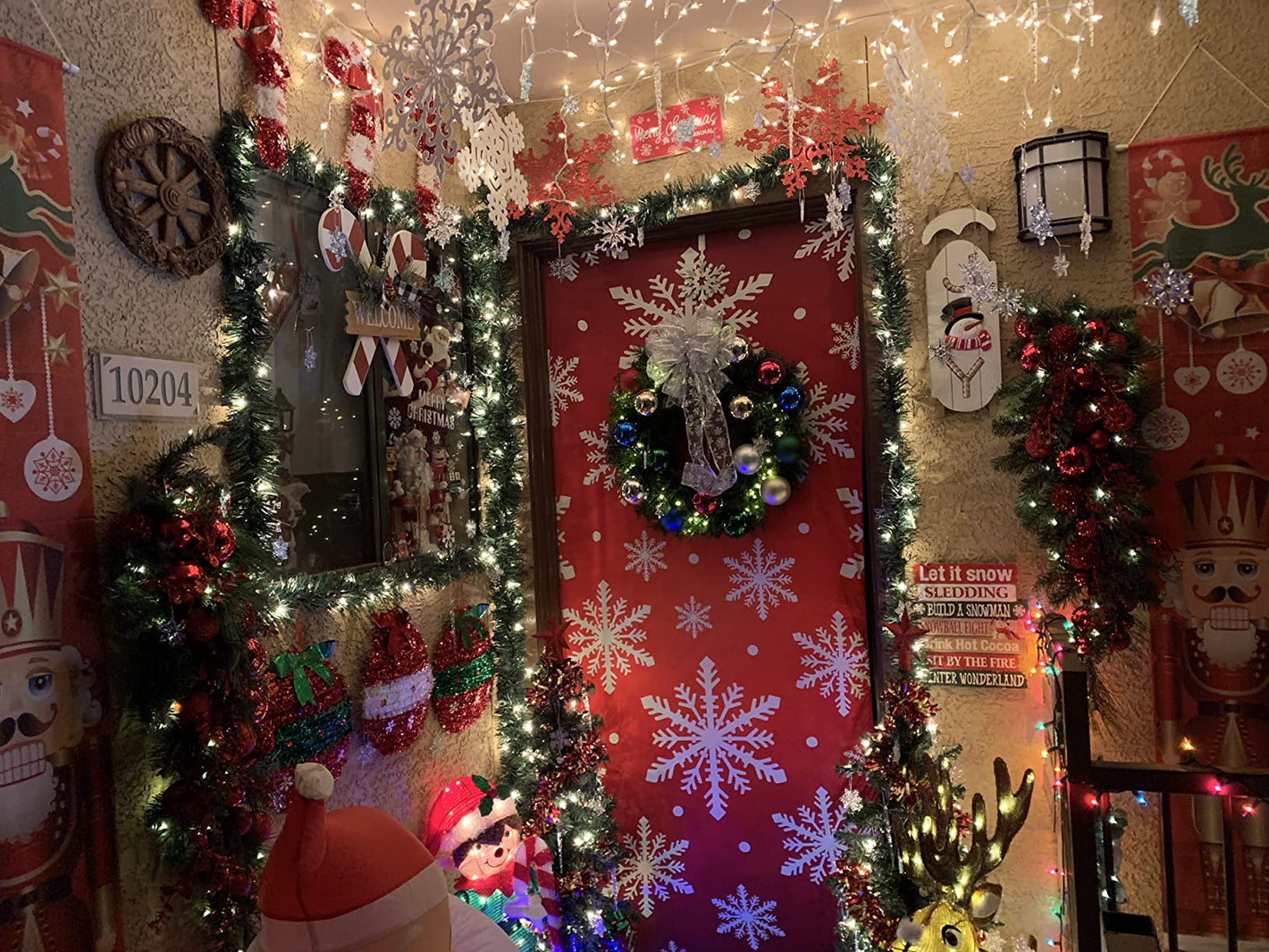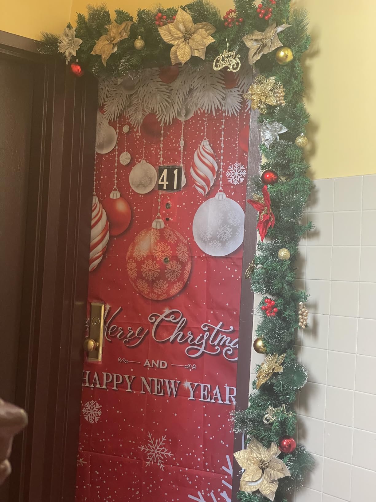 Imagina llegar a casa y ver tu puerta decorada con un diseño navideño lleno de color y alegría🎄