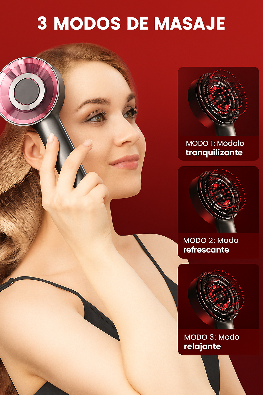 🔹 Modo Refrescante: Alta velocidad (90 rpm) que revitaliza el cuero cabelludo con un masaje energizante.