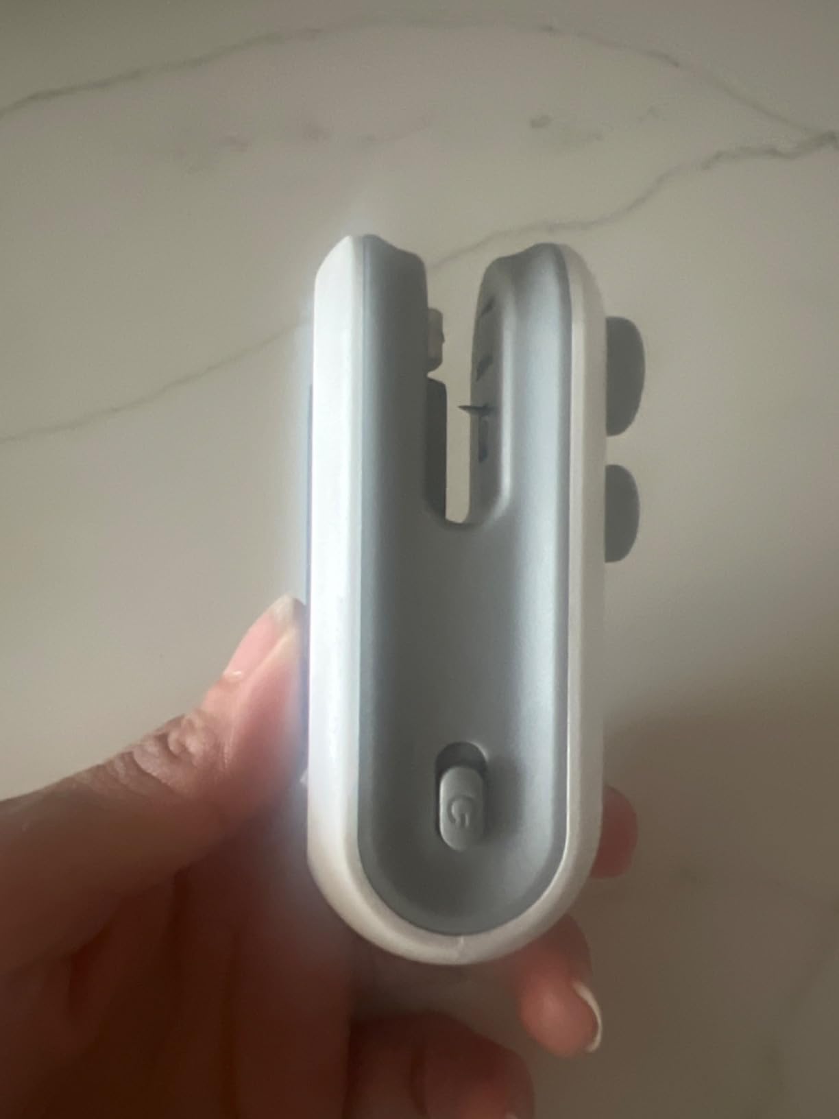 2. Mantenga presionado el botón grande para un sellado hermético, o mantenga presionado el botón pequeño para abrir la bolsa de forma segura con una cuchilla oculta y deslice.