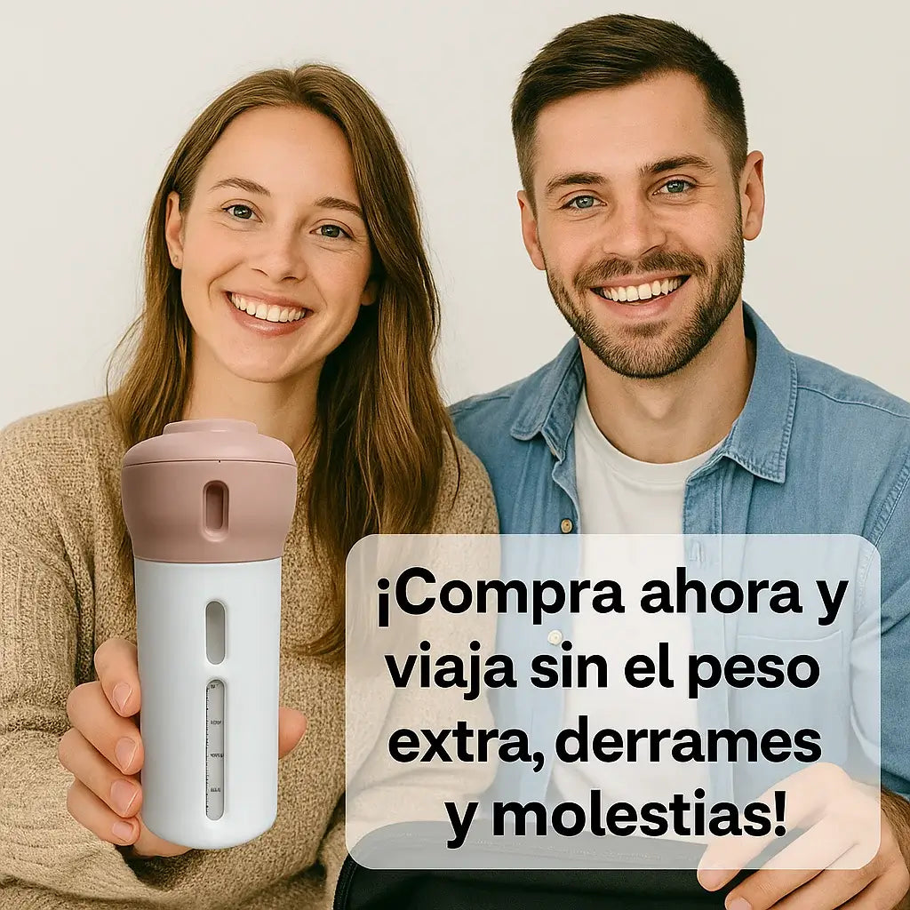 🚿 Adiós a las botellas incómodas en tu maleta. Viaja a donde quieras, organizado y sin derrames. ✈️