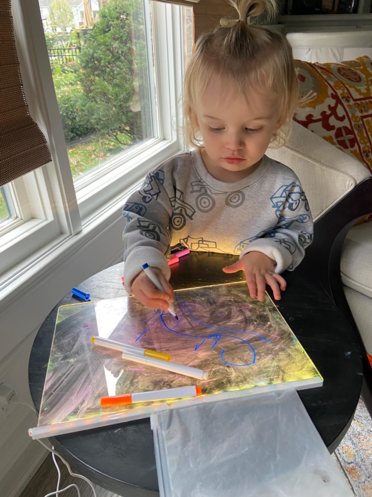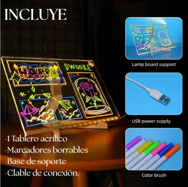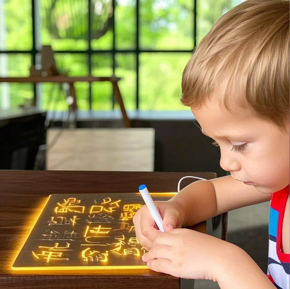 Con su diseño moderno, seguro y reutilizable, podrán practicar letras, resolver ejercicios, hacer dibujos y expresar sus ideas una y otra vez — ¡todo con un toque de luz y color! 🌈