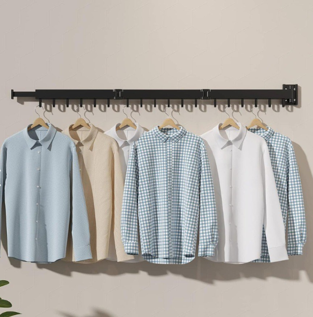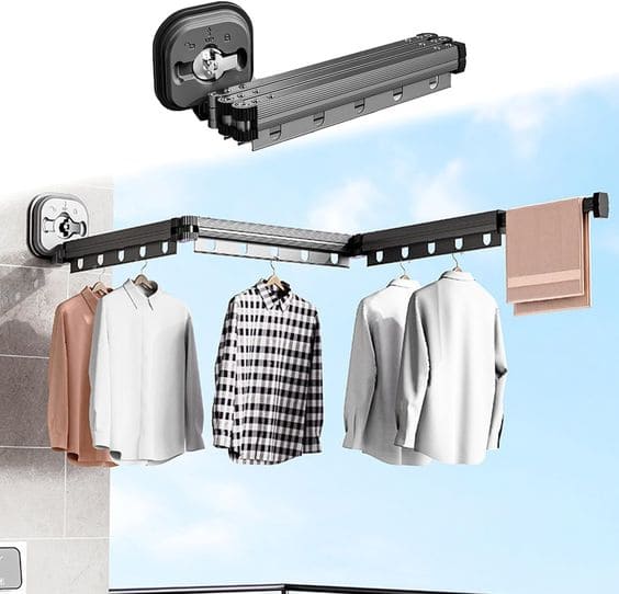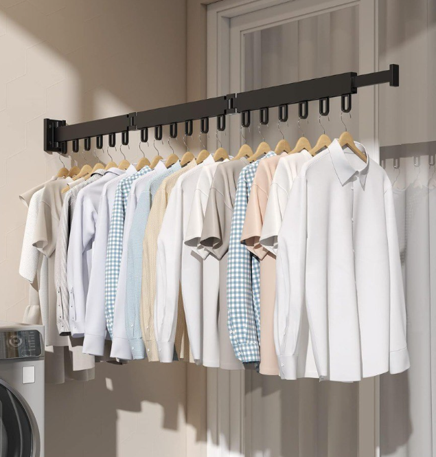 1. Ideal para apartamentos modernos, suites, habitaciones compartidas, estudios, aparta estudios o casas pequeñas: El tendedero 360° se pliega en segundos completamente contra la pared cuando no está en uso.