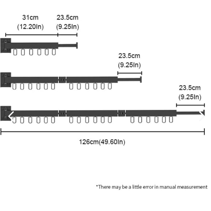 ✅Medidas: Sus dimensiones son 1.26 cm de largo, 3 secciones de 30cm y extensor de 23.5 cm, con 18 ganchos.